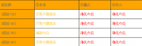 浄化の炎:(2回攻撃)(魔法攻击)2次攻击。单体10000伤害+7500魔攻UP。没有给予赤火部位20000点伤害时发动。