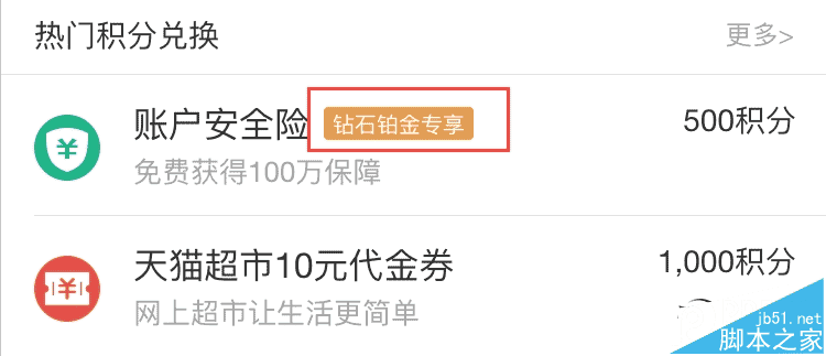 别看与黄金会员相比,铂金会员仅仅增加了一个特权,这时就是体现“等级压制”的时候了,因为这个特权是“专属兑换”,也就是你即便你黄金会员有足够的积分,但有些产品也是兑换不到的,比如说目前已经上线的“帐户安全险”,只有铂金会员和钻石会员才能兑换。