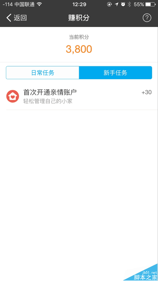 新手任务是“首次开通亲情帐户”,可以获得30积分。