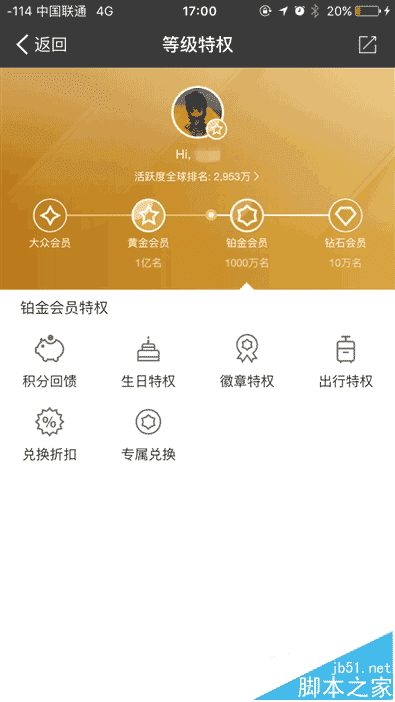 同时,我们也发现,对于同一特权,四种不同等级会员享有的优惠也是不一致的,就拿“兑换折扣”来讲,大众会员根本享受不到这一特权,其他三个等级会员等级越高折扣越大(部分权益):黄金9.5折、铂金9折、钻石8.5折。