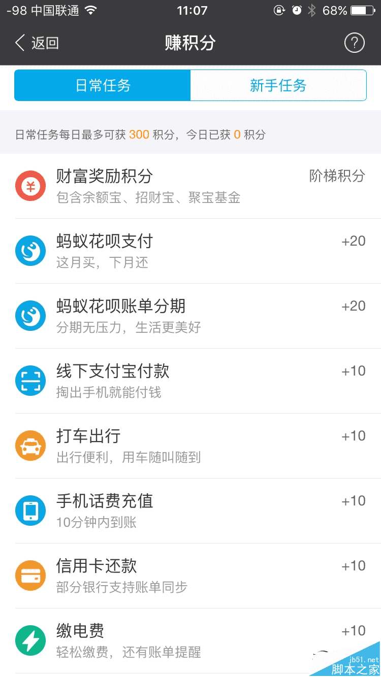 那么如何快速获取积分呢?除了继承更新前的积分外,支付宝还提供了“赚积分”任务,分为日常任务和新手任务。