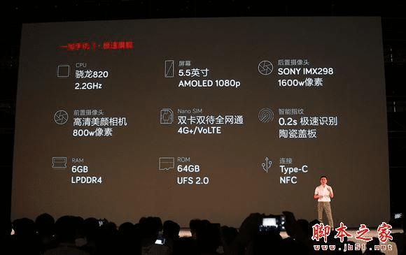 在参数上,一加手机3采用了顶级配置:搭载高通骁龙820处理器(2.2GHz),采用5.5英寸1080p AMOLED屏(超窄边框),只有6GB RAM(LPDDR4)+64GB ROM(UFS 2.0)这一个版本,前置800万像素摄像头,后置1600万像素摄像头(索尼IMX298,支持光学防抖),电池容量高达3000mAh,支持DASH闪充(基于VOOC的闪充技术)。