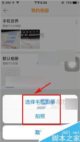 2)点击右下角的【上传照片】,接着点击选择上传照片的方式;(如下图)