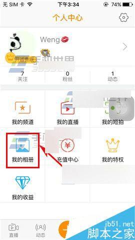 1)打开手机YY,点击右下角的【个人中心】,接着点击【我的相册】;(如下图)