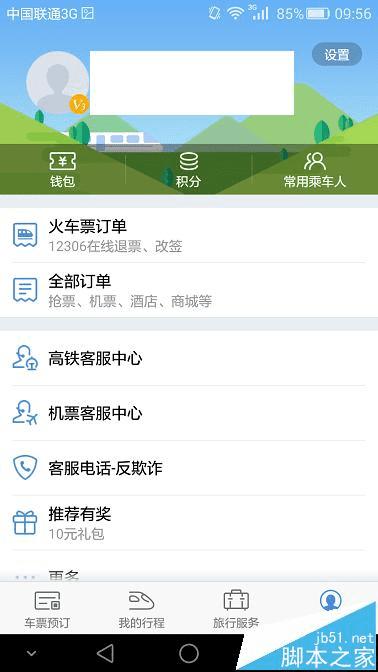 3、在个人中心界面,我们可以查看火车票订单。