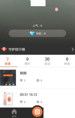 在一直播中目前的送的礼物不管是送出去还是被送,目前都是钻石,你可以看到自己直播回放,还有照片、关注及粉丝,当然你可以可以查看守护排行榜!