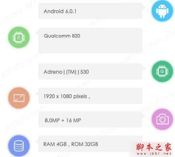 此外,该机还提供前800万和后1600万摄像头(不出意外应该是索尼IMX298,小米5/Mate 8也都在用。),运行Android 6.0.1系统。