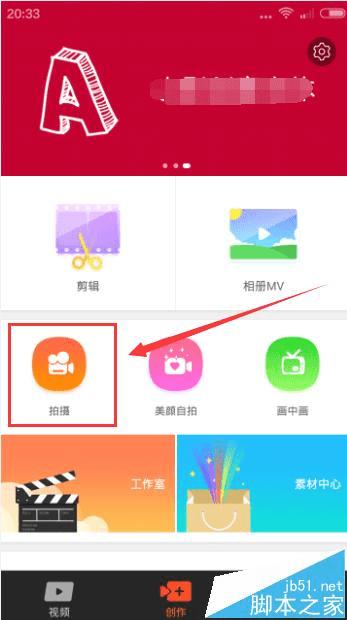 1、打开小影后,点击拍摄按钮。接下来我们来看一下,怎么选择各种拍摄模式。