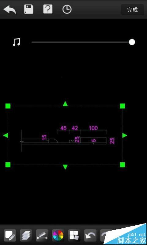 10、并且我们还可以用这个软件把CAD图纸转化成jpg文件,或pdf文件,我们点击底部的带箭头的文件夹标志,就会跳出选择导出格式,我们以图片格式为例,点击图片格式按钮会出现绿色的选择框,我们可以通过手指移动拉伸选择框选择导出的内容。如下图