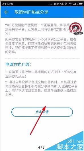 5、进入到取消热点分享页面,我们这边点击申请就可以了。