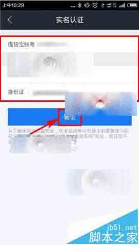 1)打开【借贷宝】,先注册借贷宝号码,然后点击下方的【注册】,然后点击输入借贷宝号码,接着输入自己的个人信息,接着点击【验证】;(如下图)