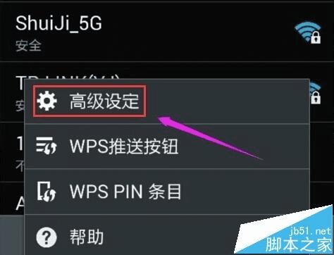 1、进入WIFI网络界面,然后再点击menu按键,然后再点击【高级设置】