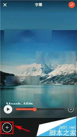 3)点击左下角的【+】,然后点击视频中间 的【请输入文字】;(如下图)