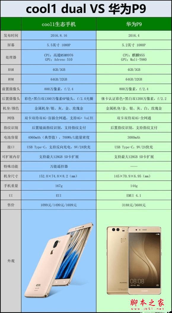这里不是要说华为P9不值它的售价,而是有的手机性价比确实很高,一分钱却不止一分货,它就是刚发布的cool1 dual。那么cool1 dual PK华为P9结果怎么样呢?下面就详情来看看两款手机的对比情况吧!