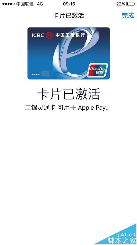 9、输入验证码后,就通过了最终的认证,该卡片已加入apple pay可以进行支付了。通过NFC技术,只要靠近读卡器,用apple手机的Touch ID就可以完成支付,嗯,这种支付应该有积分吧?以后指纹也很重要了。