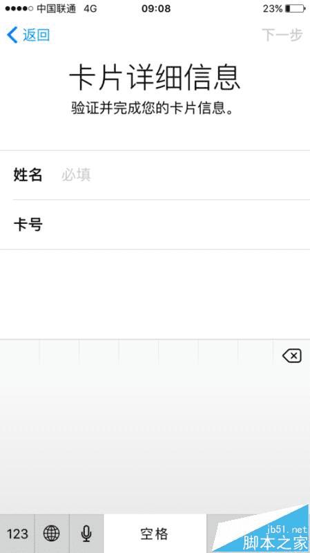 4、点击右上角的+符号增加银行卡,首先需要输入手机APPLE ID的密码,输入后选择右上角的下一步,就会进入到输入银行卡片信息的窗口,可以是借记卡也可以是信用卡。