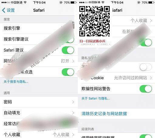 遇到这种问题是你自己手机safari浏览器设置问题,大家返回手机找到设置,然后下拉找到并打开safari,对比下面的设置调节开关就可以了,如图: