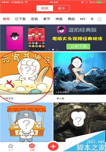 2、打开逗拍,进去主题界面,快到元宵节了就选择“元宵宝宝”这个视频吧,然后点击制作。