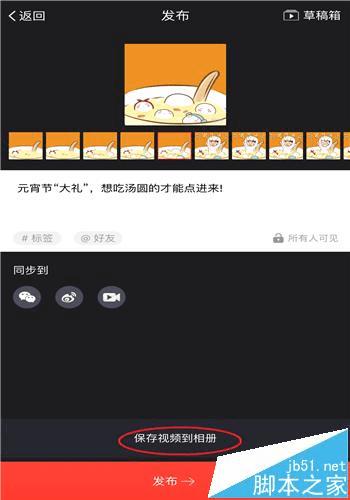 6、到了发布界面,不用发布,直接保存视频到相册即可。