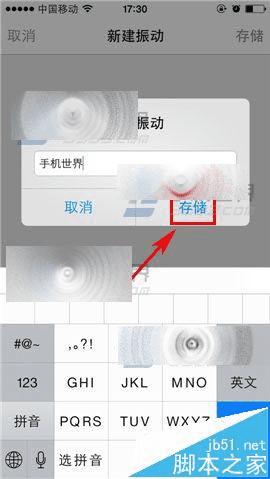 3)打开后按要求触摸屏幕设置振动效果,设置完后点击右上角的【存储】,接着再输入你的名称点击【存储】就可以了。(如下图)