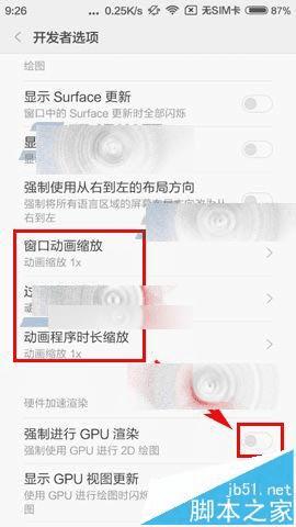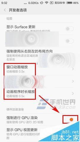 2)接着我们再点击【动画缩放】将其全部设为【0.5x】,然后再将【GPU渲染】打开就可以了。(如下图)