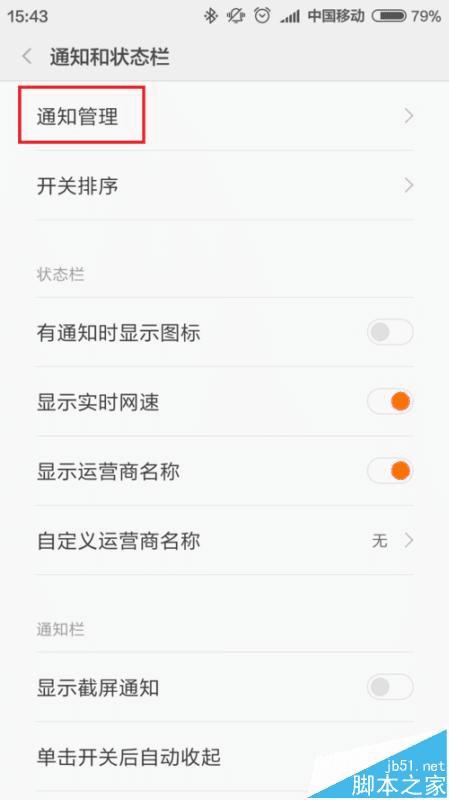 2、在通知和任务栏设置页面中,点击页面中的第一项“通知管理”选项,进入该选项设置页面。