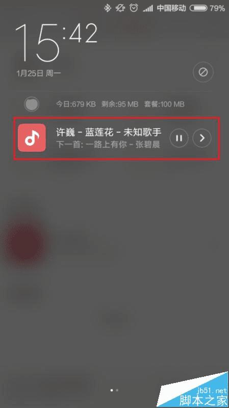 1、如果大家发现MIUI系统通知栏中小米音乐自动展现了控制开关,我们可以先下拉通知栏,找到控制开关出现的位置。