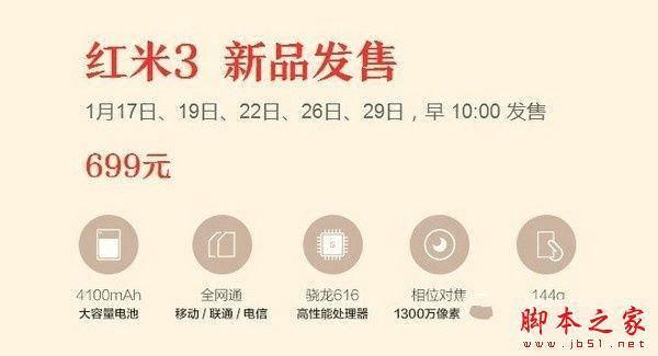 不过结合近期红米Note 3全网通版的首发,以及春节后小米5也将登场的状况来看,红米3高配版的发售时间或将被再延后。