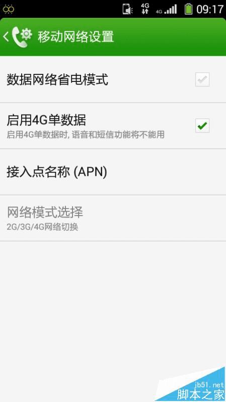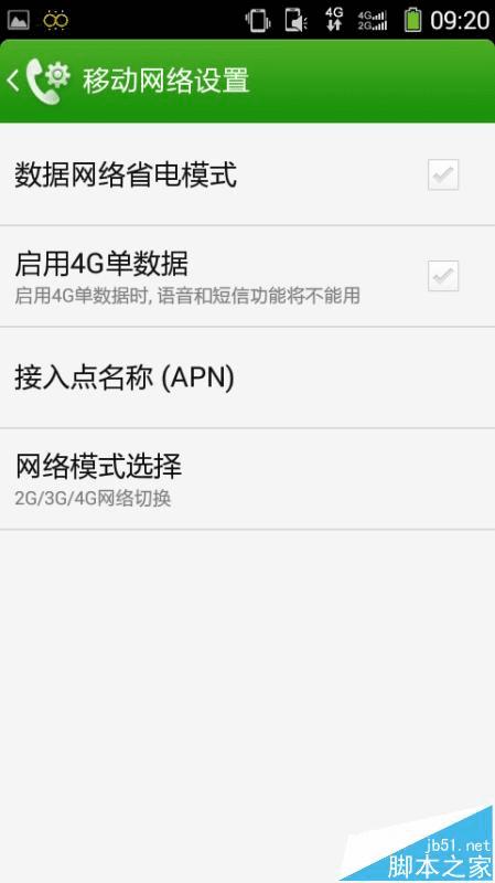 2、检查手机设置,发现处于单4G状态,经验证手机启用单4G状态会导致手机无法正常通话,无法发短信。