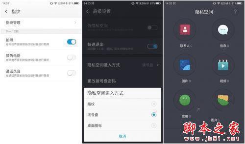 6.大神Note3高配版搭载了360 OS系统,其中的“隐私空间”功能异常强大,不留下丝毫入口的踪迹。指纹识别在其中就扮演了重要作用,设定指定指纹后,可以悄悄进入私人隐秘空间。