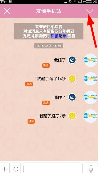 小恩爱聊天记录怎么删1、用户进入聊天页面后,点击右上角的下拉箭头,如下图: