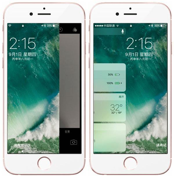 ▼iOS10锁屏状态下快捷打开相机改成了向左滑动,向右滑动则是开启插件面板。