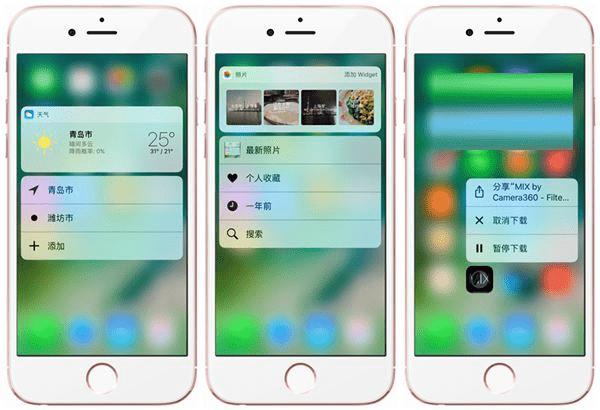 又是3D Touch!iPhone6s、iPhone6s Plus通过Peek轻压诸如天气、照片等APP,现在也会显示它们对应的插件面板,在更新应用时还能取消、暂停或优先下载,可以看到,压力触控在iOS10交互中的重要性又被提升了一大截,勾引用户换新机的节奏!