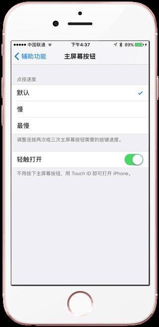 这个操作上的改变着实让很多小伙伴感到不习惯,不过好在我们可以手动关闭它,进入“设置——通用——辅助功能——主屏幕按钮”,将“轻触打开”开启即可,这样亮屏下轻触即可解锁,和此前没啥两样,但没有Touch ID的iPhone5/5c用户就只能默默接受新的解锁方式了。