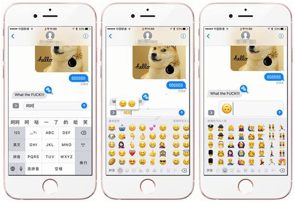 emoji表情现在也有新玩法,你可以直接输入完全部文字,然后再切换到表情键盘,此时能够被用表情取代的文字都会自动被标注出来,点击选择替换就可以了。如果只有3个或3个以内的emoji表情,iMessage就会自动将其放大显示,如果是4个或以上则仍然是正常显示。