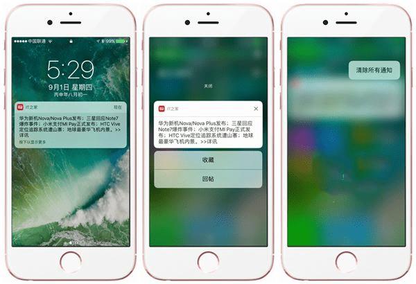 iOS10中清理全部通知有个小技巧,用力按通知栏右上角的“X”按钮,选择“清除所有通知”,世界一下子就清净了……