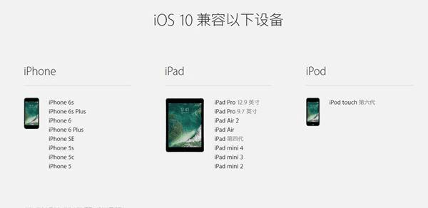 4英寸及以上屏幕的iPhone都可以升级,视网膜屏+Lightning接口的iPad都可以升级,iPod Touch只有第六代可以,具体设备列表参见下图:
