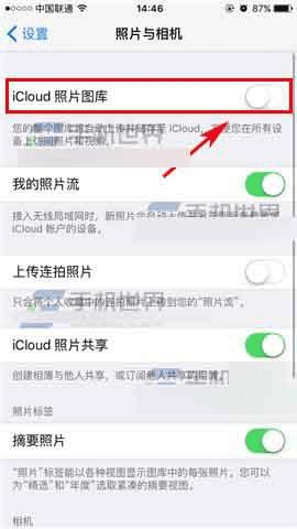 2)然后打开【iCloud照片图库】,打开后我们再根据自己的需要进行选择方案就可以了。(如下图)
