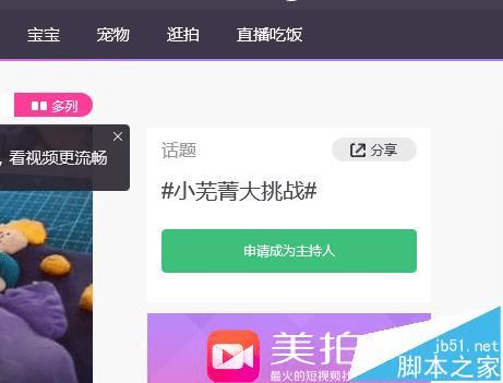 1、首先使用手机版美拍发布图片·视频并加上在自己创建的话题