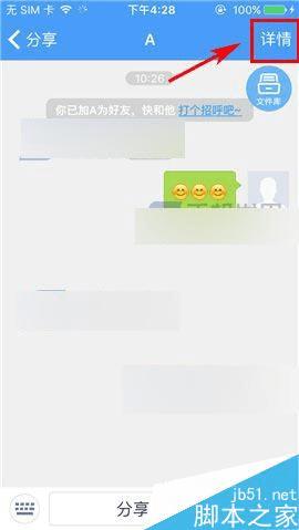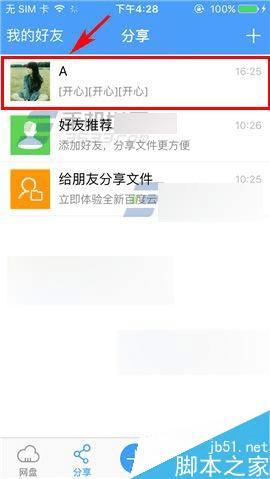1)打开百度云,点击打开要清空聊天记录的好友,接着点击右上角的【详情】;(如下图)