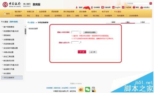 4、选择左下角的“手机设备解绑”,输入交易码和动态口令即可。
