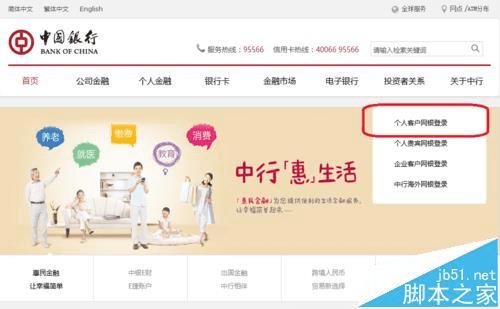 1、打“中国银行”官网,选择“个人客户网银登录”。
