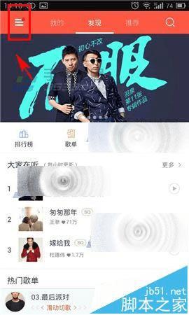 1)打开天天动听进入应用后点击左上角【三】,接着点击【滴滴求歌】。(如下图)