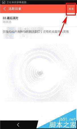 4)搜索找到你要回复的歌曲后点击该【歌曲】,接着编辑内容后点击右上角【发送】。(如下图)