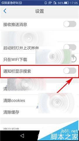 2)点击【系统设置】然后点击下方的【通知栏显示搜索】旁边的【按钮】即可。(如下图)