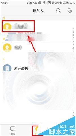 1)打开小米视频电话进入应用后点击下方【联系人】,在联系人页面点击你要拉黑的【人】,接着点击右上角【...】。(如下图)