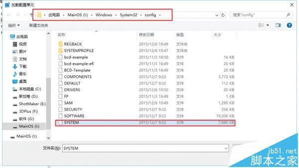 4.在弹出窗口中选择路径MainOS/windows/system32/config/system