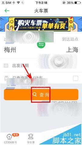 1)打开手机同程旅游进入应用后点击功能栏中【火车票】,进入普通火车票查询页面,编辑火车票信息后点击【查询】。(如下图)