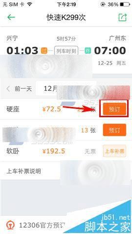 2)找到你要购买的【班次】,点击进入详情,点击你要购买的【车票类型】右边【预订】。(如下图)
