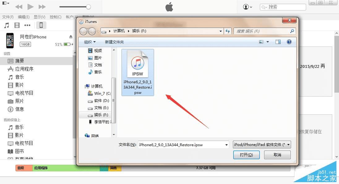 4、iTunes会弹出对话窗--请选择已经下载好的固件--点击更新--等待iTunes运行。